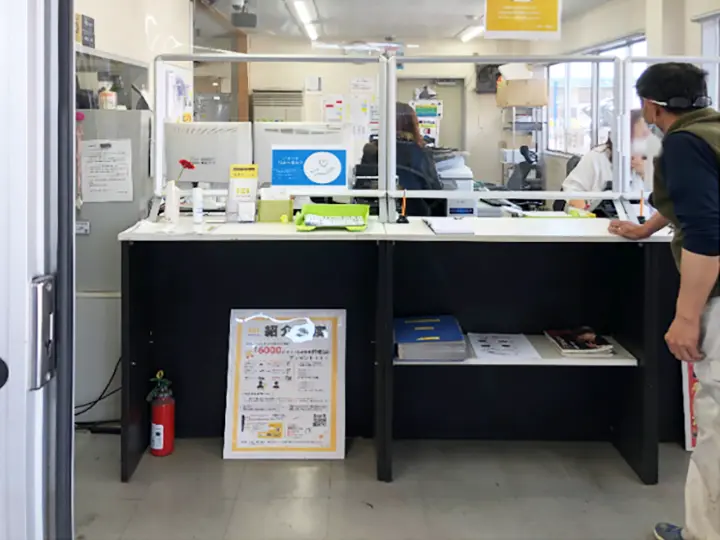 入口から左手にある事務所と待合スペース